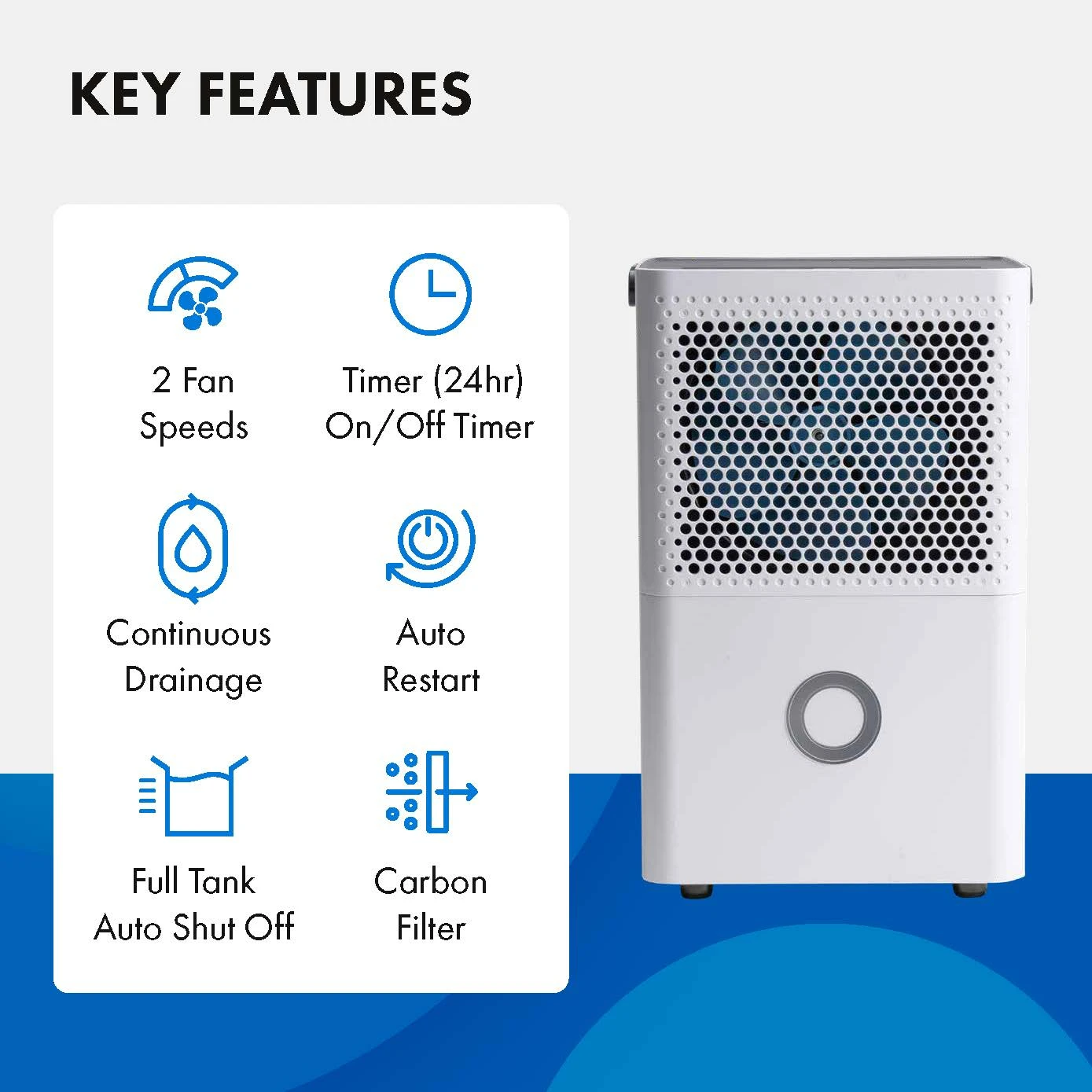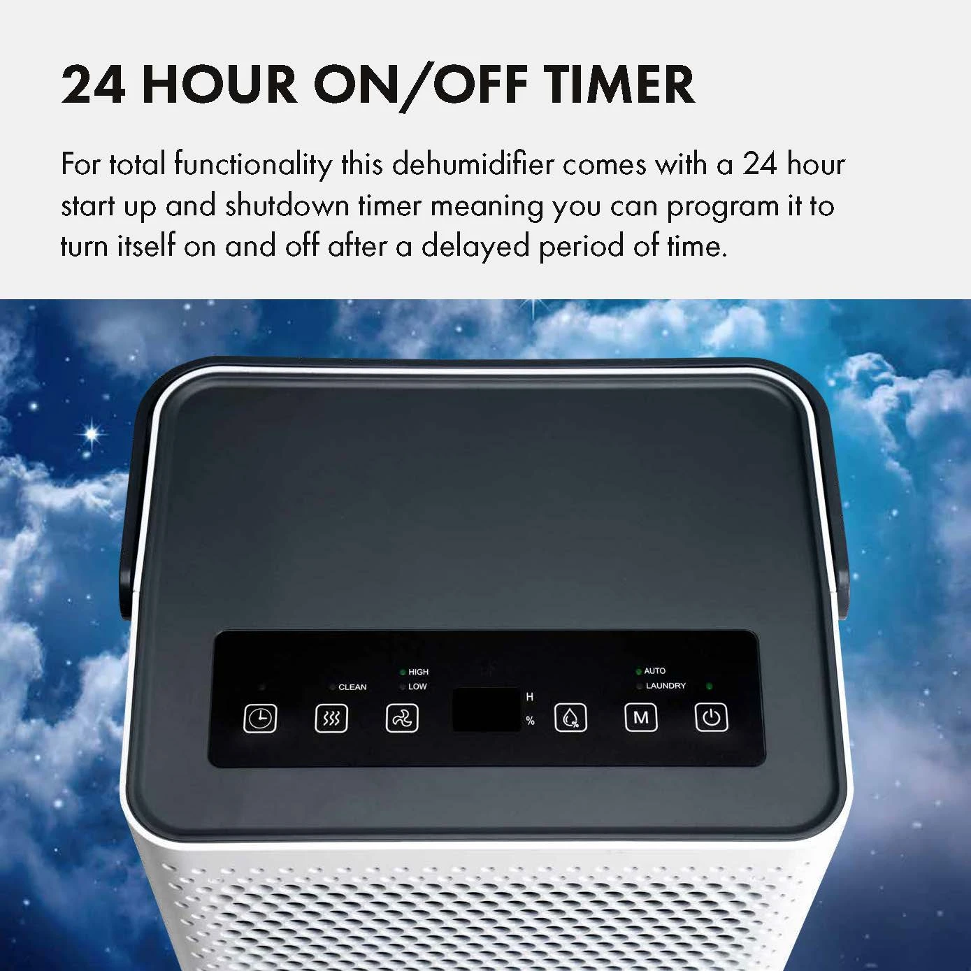 Featuring a 24 Hour Start Up Shutdown Timer meaning you can set it to turn itself on or off after a delayed time within 24 hours, the option for continuous drainage, 2 fan speeds and a sizable 1.8l tank.