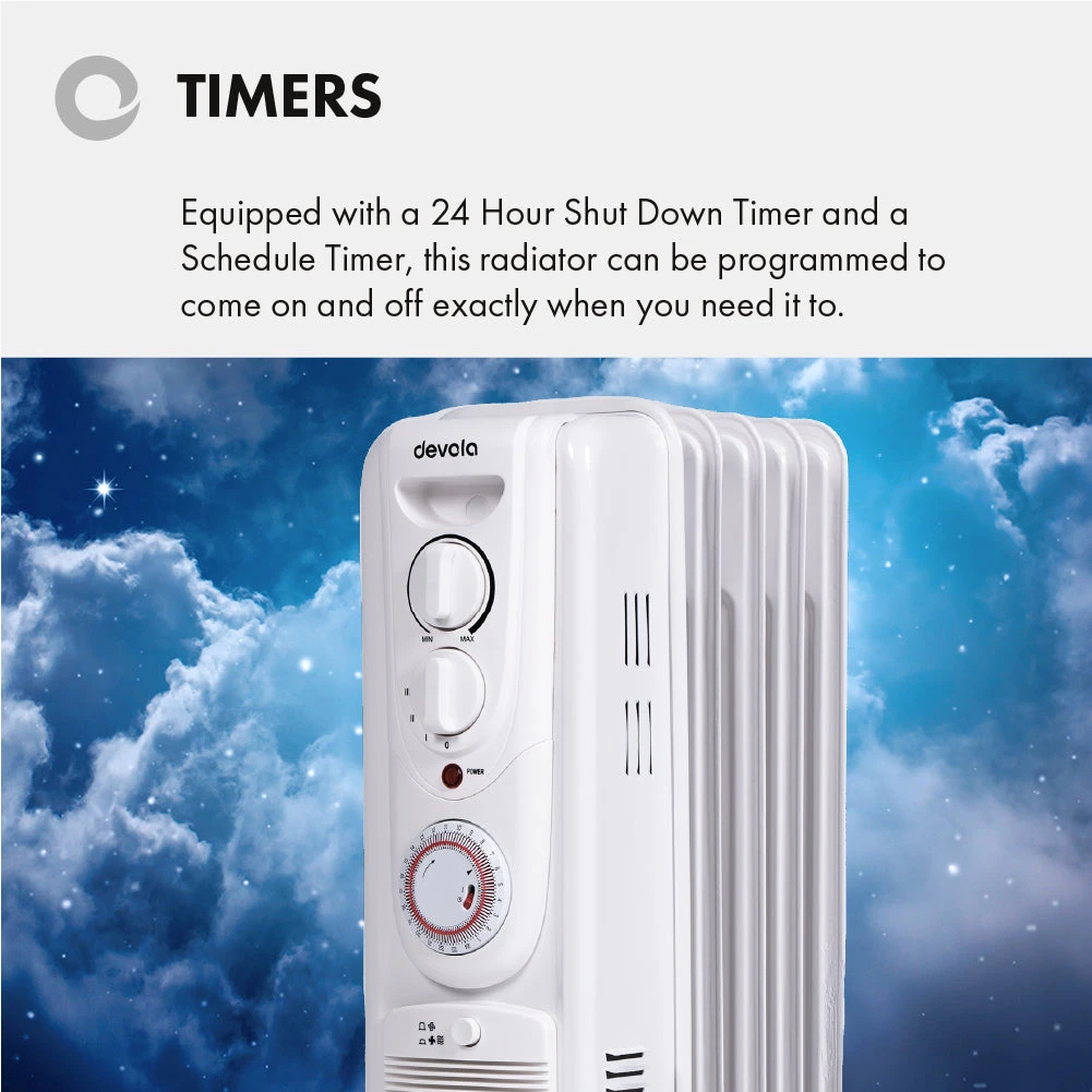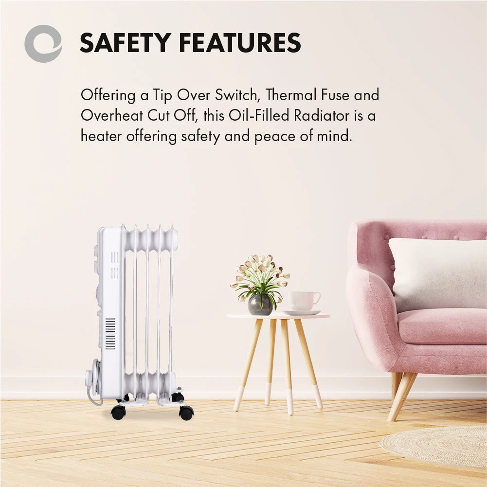 Devola 1500W Oil Filled Radiator (5 Fin) White – DVSOR5F15W