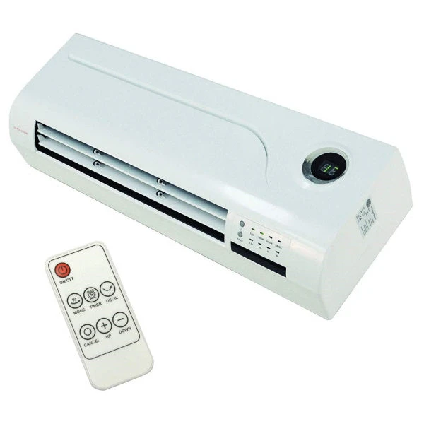 The Over Door PTC Heater/Fan with Remote Control and 24 hour 7 day Timer is ideal for installation in shop doorways and business reception areas. In fact install it anywhere you want to limit heat loss or temperature fluctuations where an exterior door is frequently in use.With 2 heat settings (1 or 2 kW) and a fan only setting, the Over Door Heater and Fan also features a wide oscillating angle for generous heat distribution and a timer for total control. The Over Door Heater and Cooler from Prem-I-Air features a ceramic PTC element, which is an extremely efficient heating method, ideal for areas where temperatures may fluctuate.