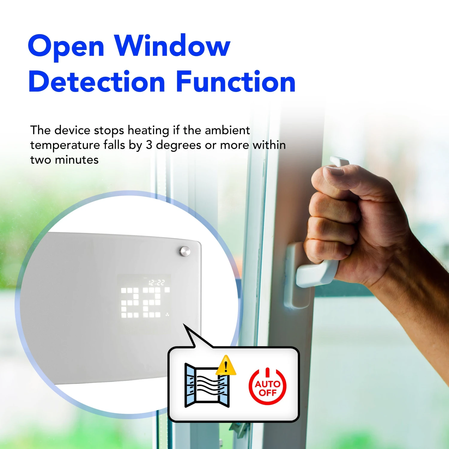 The unit boasts state of the art technology including 3 second rapid heating, automatic oscillation and open window detection.