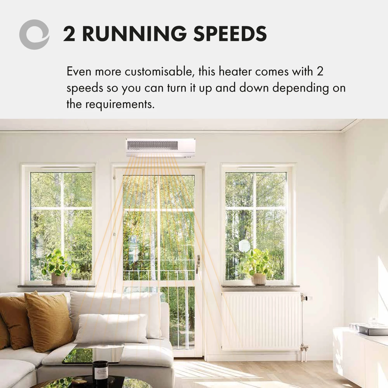 The air curtain is lot 20 compliant and has a front air vent which provides efficient heat circulation to prevent overheating. Conveniently, it comes with a pre-wired 13A BS plug, making it very easy to install. In addition, the mounting brackets provided allow the installer to affix the heater flush, or at a 30° or 60° angle.