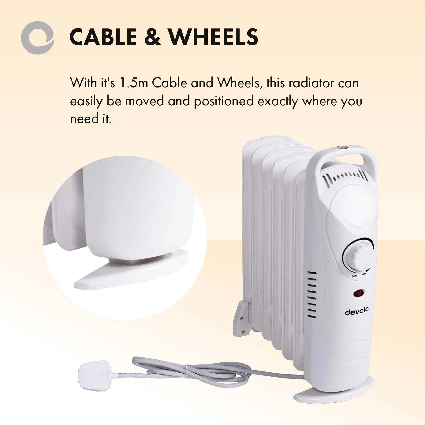 Devola 800W Mini Oil Filled Radiator (9 Fin) White – DVMOR9F08W