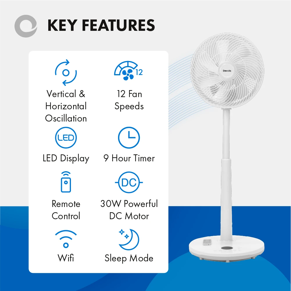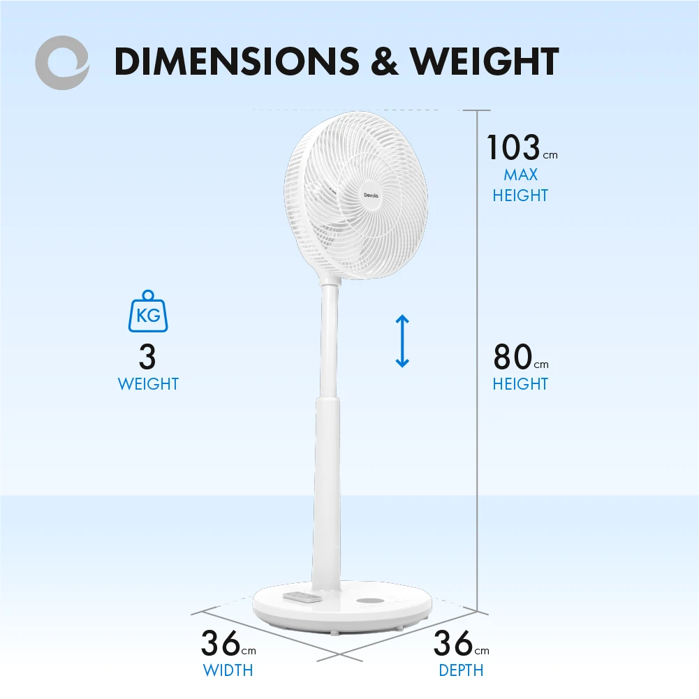 A new take on a classic, the 12” Devola pedestal fan is the first in our fan range to feature Wi-Fi compatibility, alongside its array of other features.