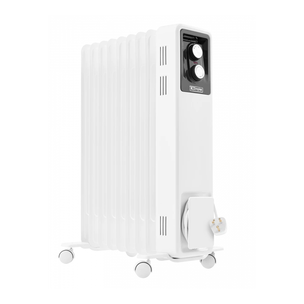 This powerful Dimplex oil filled radiator is perfect for use in the home or office where a heat boost is required. It is near silent when in operation which is ideal for bedroom use. With a 1.8m cable and castor wheels it is easy to transport and has a generous reach. The thermostat controls the heat output according to the room temperature. This ensures that the heater does not product heat unnecessarily.Â