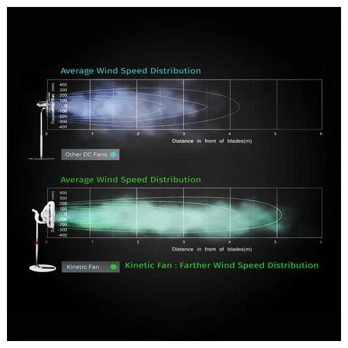 The EcoAir Kinetic is a highly energy efficient fan which provides high performance with a low energy consumption. Powered by an energy efficient DC motor, it delivers high velocity and an amazingly ultra quiet performance providing energy savings of up to 75%. Designed with a unique dimple surface on its fan blades, the Kinetic can circulate wind further than other DC fans.