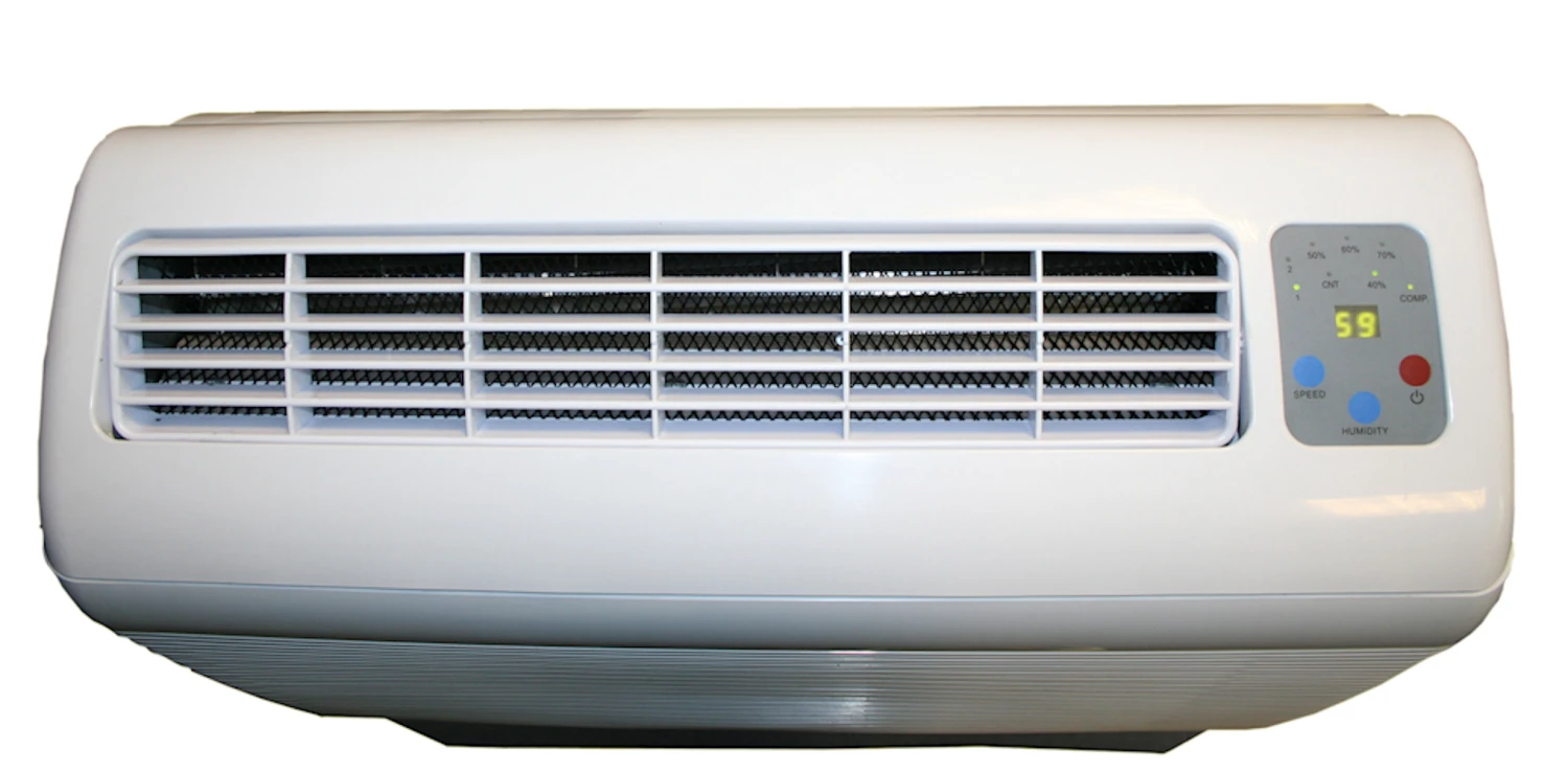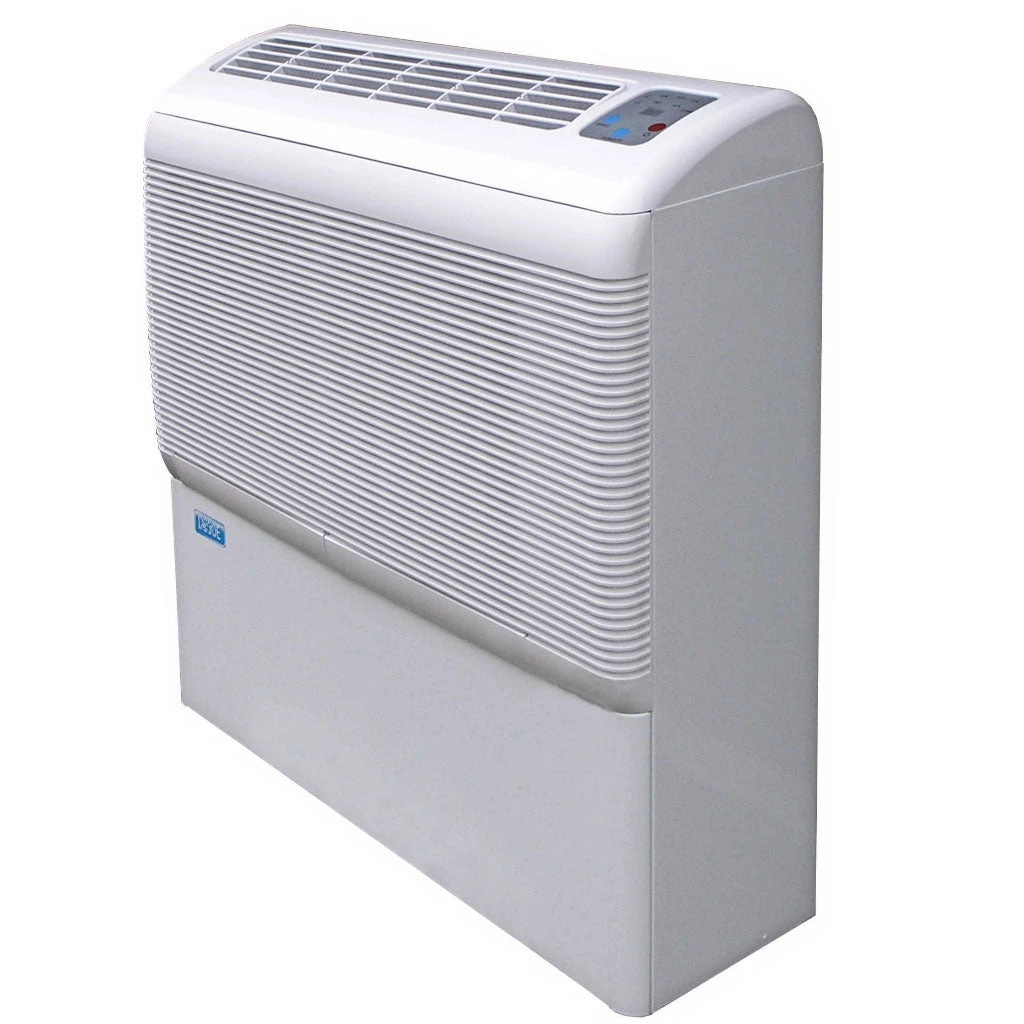 Built with a wide variety of uses. Designed for floor standing against a wall. Unlike most dehumidifiers this unit is coated internally to protect itself from the corrosive effects of chlorinated water if used in swimming pool areas. The D850 is relatively slim of mostly metal construction often used for controlling humidity in public areas.