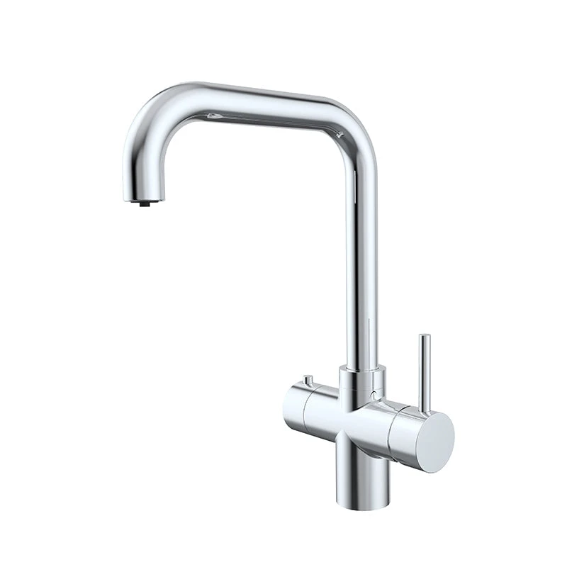 The Sigma range offers a contemporary 3 in 1 tap that provides near boiling 98°C water. Ideal for making hot drinks and many other kitchen uses as well as being a standard hot and cold mixer all from a single tap. This makes it ideal for retro-fit applications as well as new kitchens in homes and small offices. The range offers square or swan neck spouts in a polished chrome or brushed nickel finish.