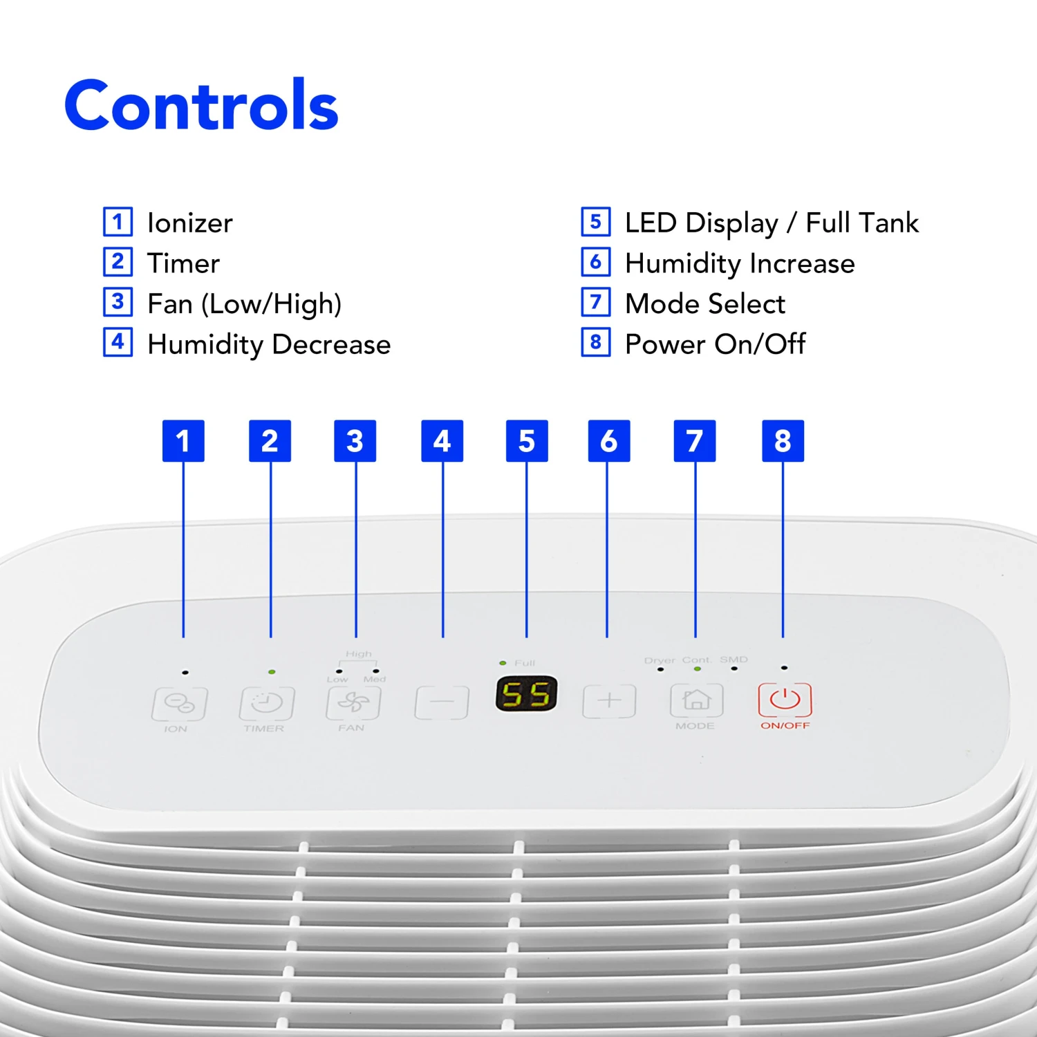 Your Dehumidifier works properly and protects your home from an accident even when you are gone! The tank management system stops working when the container is full.