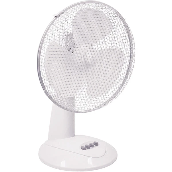 The 12″ (30 cm) Desk Fan features 3-speed settings, an oscillating function for wider distribution, and fan head angle to ensure that this tabletop or desktop fan really hits the spot. With a simple button control panel that is an easy-to-use, modern design, and quiet operation, this attractive Desk Fan is ideal for home or small office use.